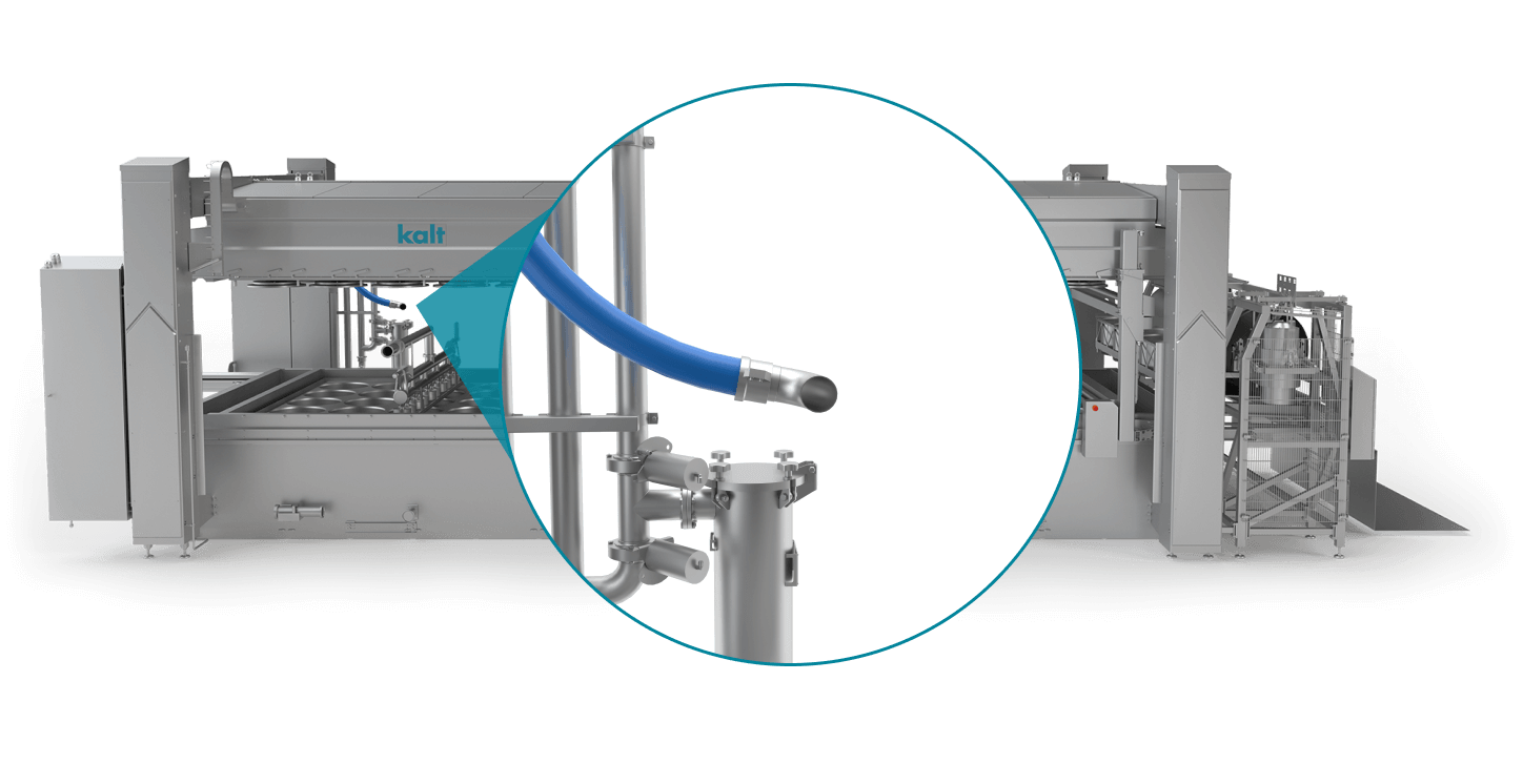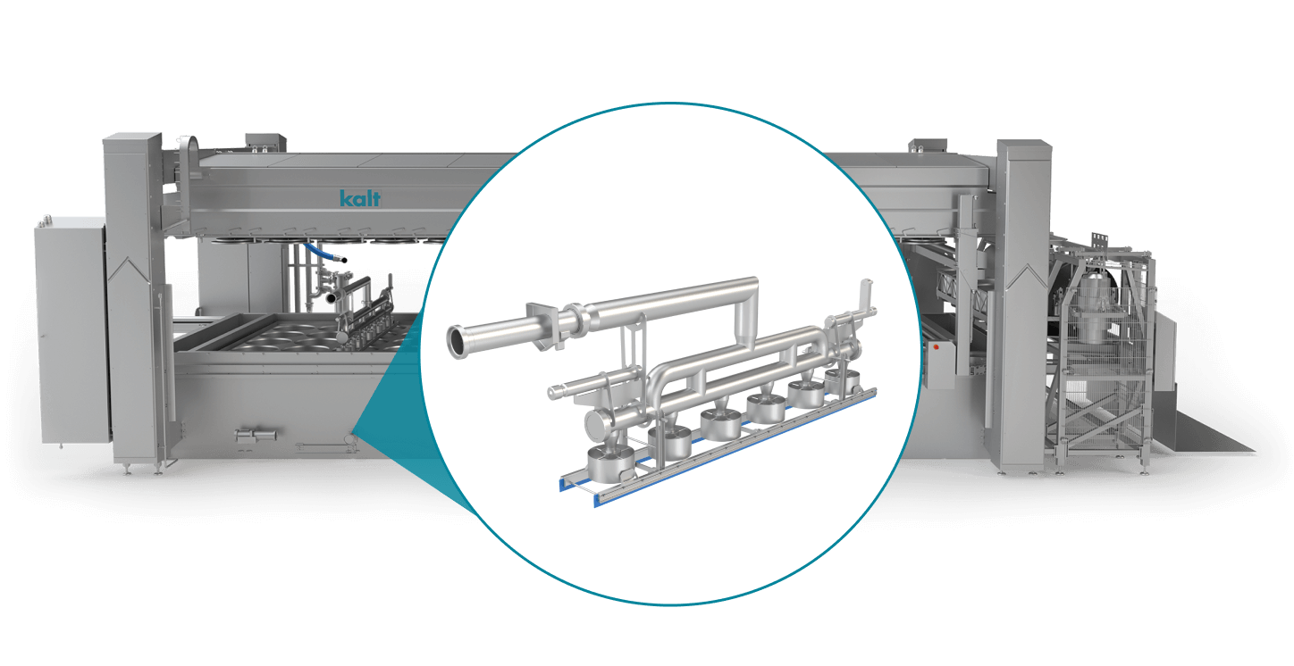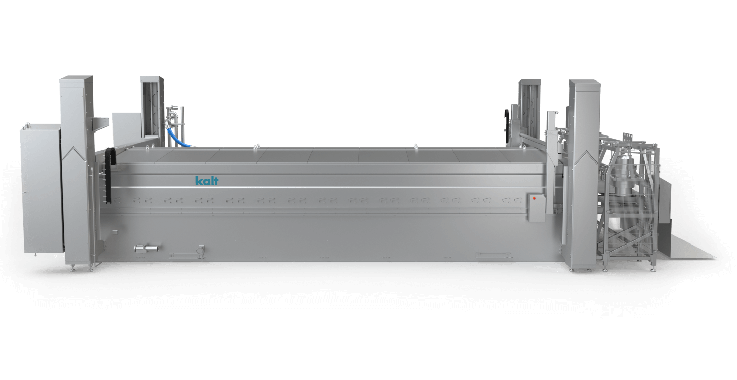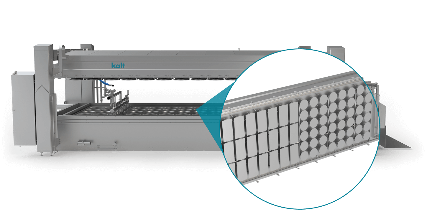 Durch die fortschrittliche Kalt Rütteltechnologie wird das Ausformen hygienisch und schonend durchgeführt. Danach kann ihr Produkt direkt in den Salzbadkanal oder auf ein Förderband oder Tisch umplatziert werden.