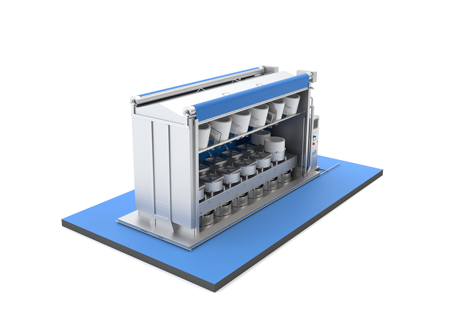 Die Kalt Kassettenpresse ist so konzipiert, dass sie unterschiedlichste Vorgaben präzise erfüllen kann. Das betreffende Pressprogramm wird auf das jeweilige Käseerzeugnis des Kunden abgestimmt. Den Pressdeckeln kommt beim Pressvorgang eine besondere Rolle zu, sorgt ihre Spezialperforation doch für eine gleichmässige Entmolkung der Käselaibe.