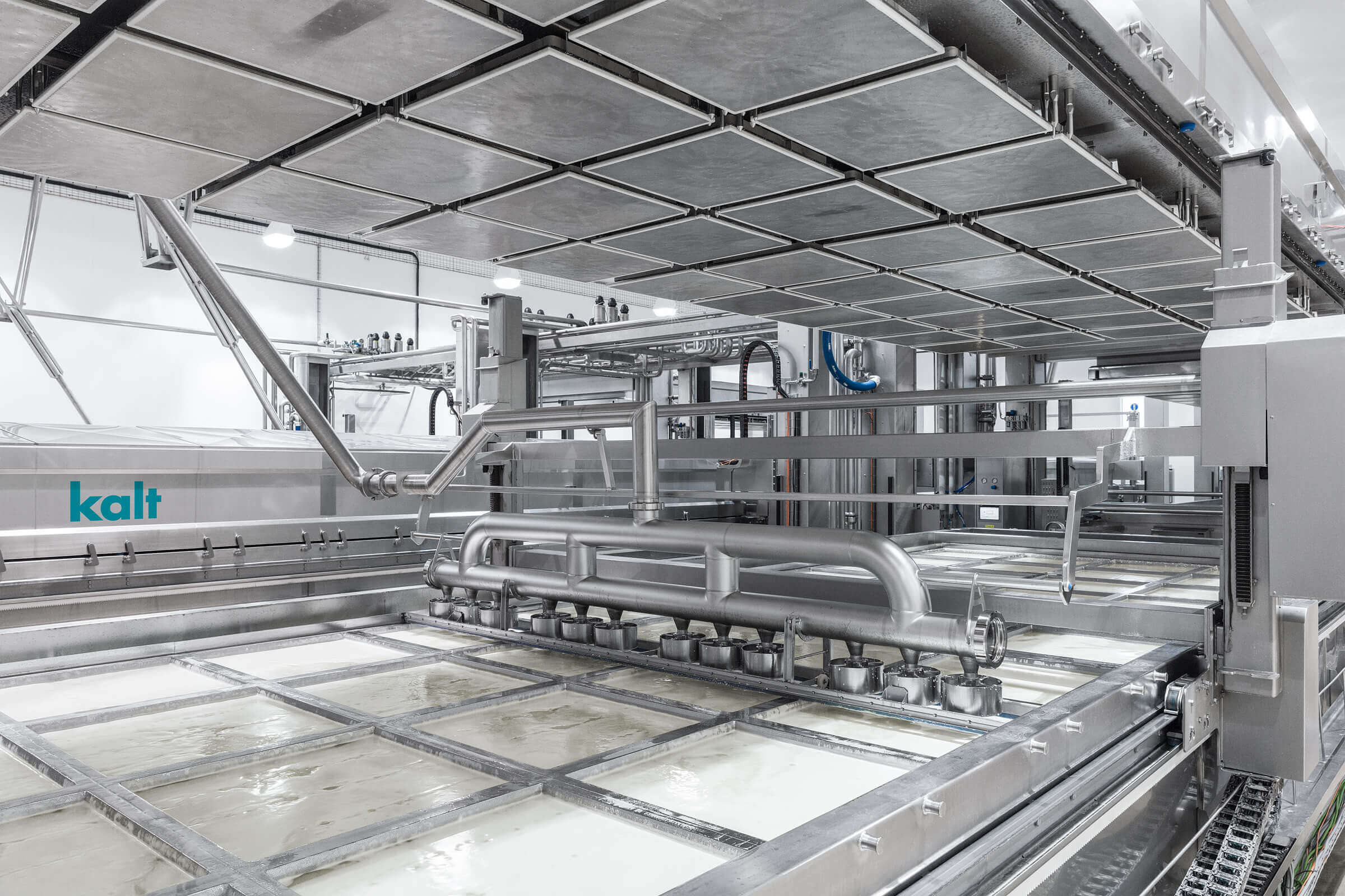 - Komplette Produktionslösungen für alle Arten von gepresstem Käse mit einem Volumen von 1.400 kg bis 2.400 kg pro Charge